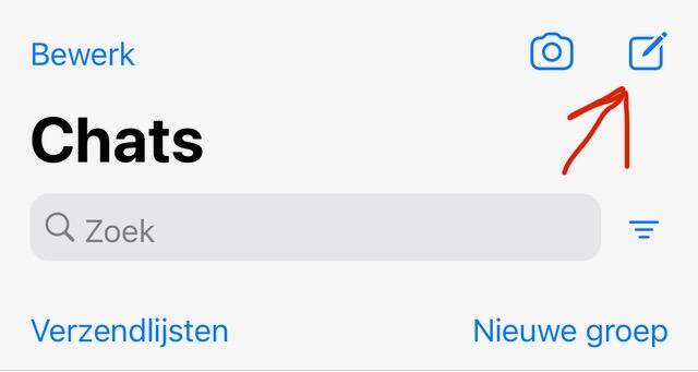 1. Open Whatsapp en start een nieuw bericht / gesprek.